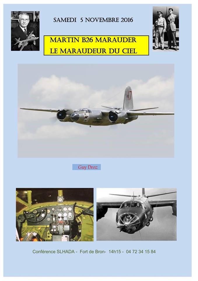 Guy Droz, lui, s’est attaché à mieux nous faire connaître le Martin B-26 Marauder. Sa naissance, sa conception, les hommes qui l’ont conçu , sa mise au point et sa vie en formations. Les Lyonnais connaissent bien cet avion.