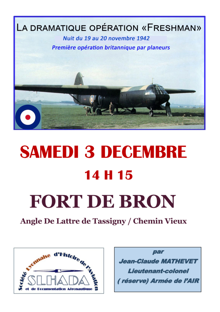 Dernier conférencier de l’année, Jean-Claude Mathevet a disséqué l’opération Freshmann qui visait à convoyer un commando en planeurs depuis l’écosse jusqu’en Norvège afin de mettre hors d’usage une usine de production d’eau lourde nécessaire à la fabrication d’une bombe atomique. 2 Halifax remorquant 2 Horsa sont utilisés. Un seul Halifax rentre, les 3 autres aéronefs percutent en Norvège. Aucun survivant.
