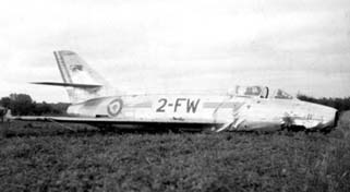 Son Mystère IV A sur le gésier en 1956. Extinction réacteur