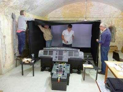Une manifestation spectaculaire a été installée dans une de nos salles du Fort à l’occasion des Journées Européennes du Patrimoine en septembre. Il s’agit ni plus ni moins que d’un simulateur de vol grandeur nature en ce sens que le tableau de bord de l’avion – un Airbus A-320 – est réalisé en vraie grandeur. Seule particularité, mais de taille, cet ensemble est réalisé entièrement avec des éléments de Lego. Cette « attraction » a séduit énormément de jeunes qui se sont bousculés pour prendre les commandes du biréacteur et faire un tour de piste. Nous n’avons déploré aucune victime. Juste une sortie de piste sans gravité. Merci à Nicolas et Emmanuel dans leur rôle d’instructeur. Merci à Dominique qui, lui, tenait celui de la tour de contrôle. Sans oublier les « petites mains » qui ont monté et démonté le matériel.