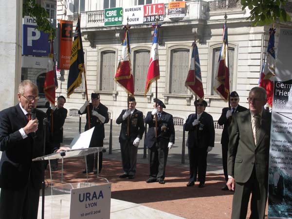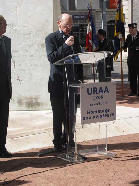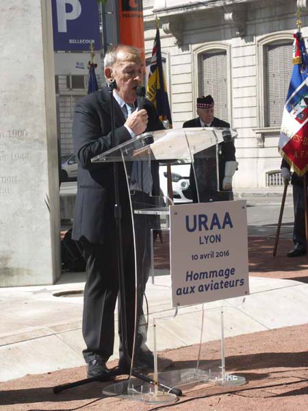 Jour de commémoration à Lyon ce matin. L’Union régionale des associations aéronautiques (URAA) organisait sa manifestation annuelle pour honorer des aviateurs ou gens de l’air. Cette année Mme Germaine l’Herbier Montagnon et l’escadrille SPA 62 étaient à l’honneur.