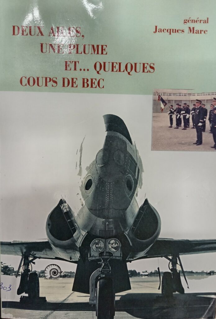 Peu connu du grand public, le général Jacques MARC raconte dans son livre »Deux ailes, une plume et quelques coups de bec » le déroulement de sa carrière, d’une intensité et d’une longueur remarquables, depuis ses premiers vols, peu après la deuxième guerre mondiale, jusqu’aux hautes responsabilités qui furent les siennes au sein de la Défense Française et de l’OTAN. Le verbe est naturel, vif, parfois « tranchant » mais jamais ennuyeux ! Le reflet d’un engagement total et d’une passion du vol dont certains aspects rappelleront des souvenirs aux lecteurs, dans le cadre d’une époque révolue, mais pas si lointaine – Bonne lecture !